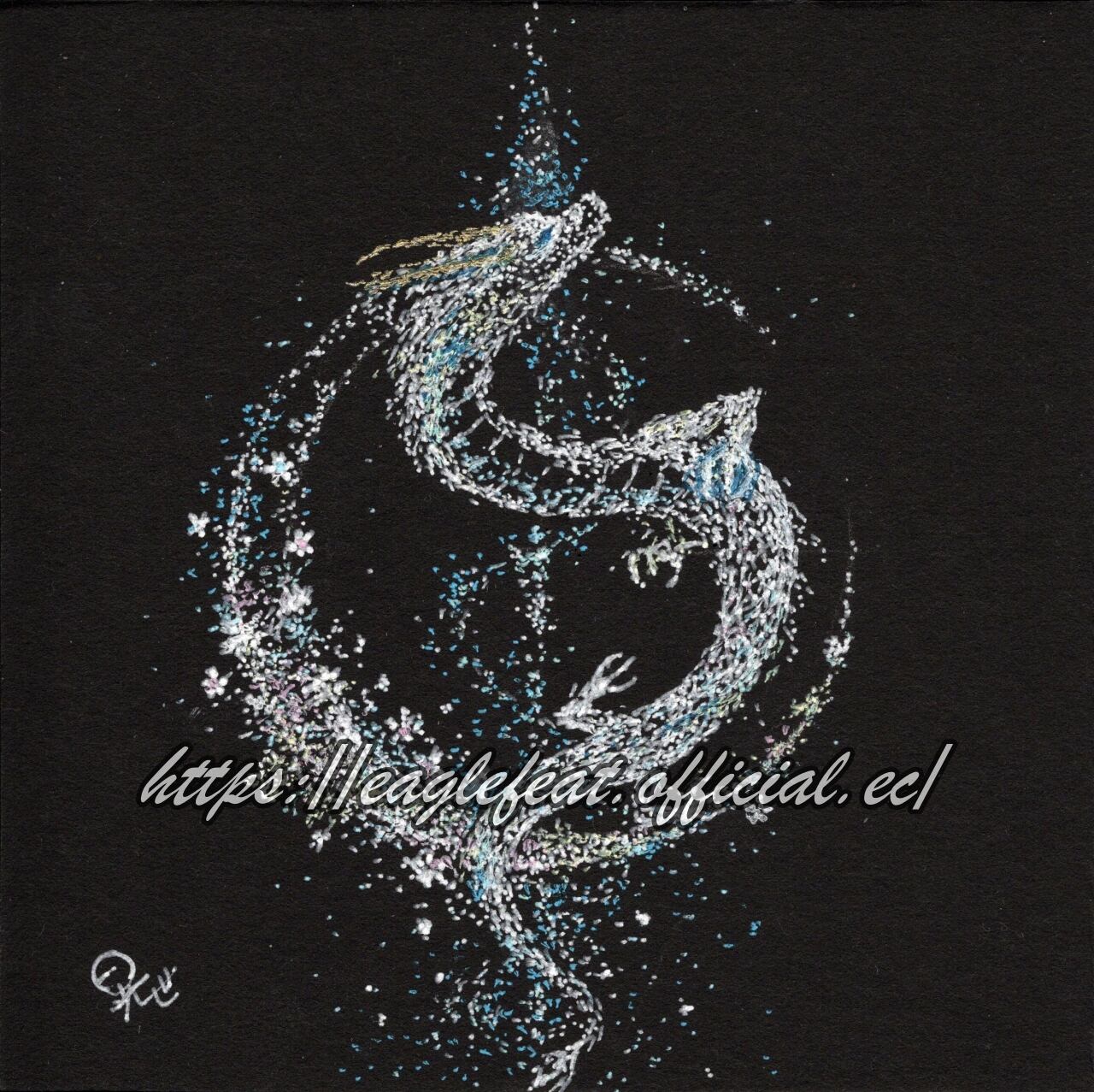 10cm角の小さな世界に、繊細な点描で描いた月と龍。