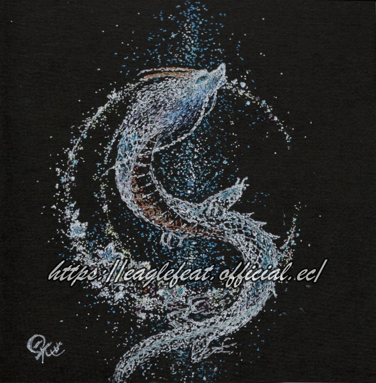 10cm角の小さな世界に、繊細な点描で描いた月と龍。