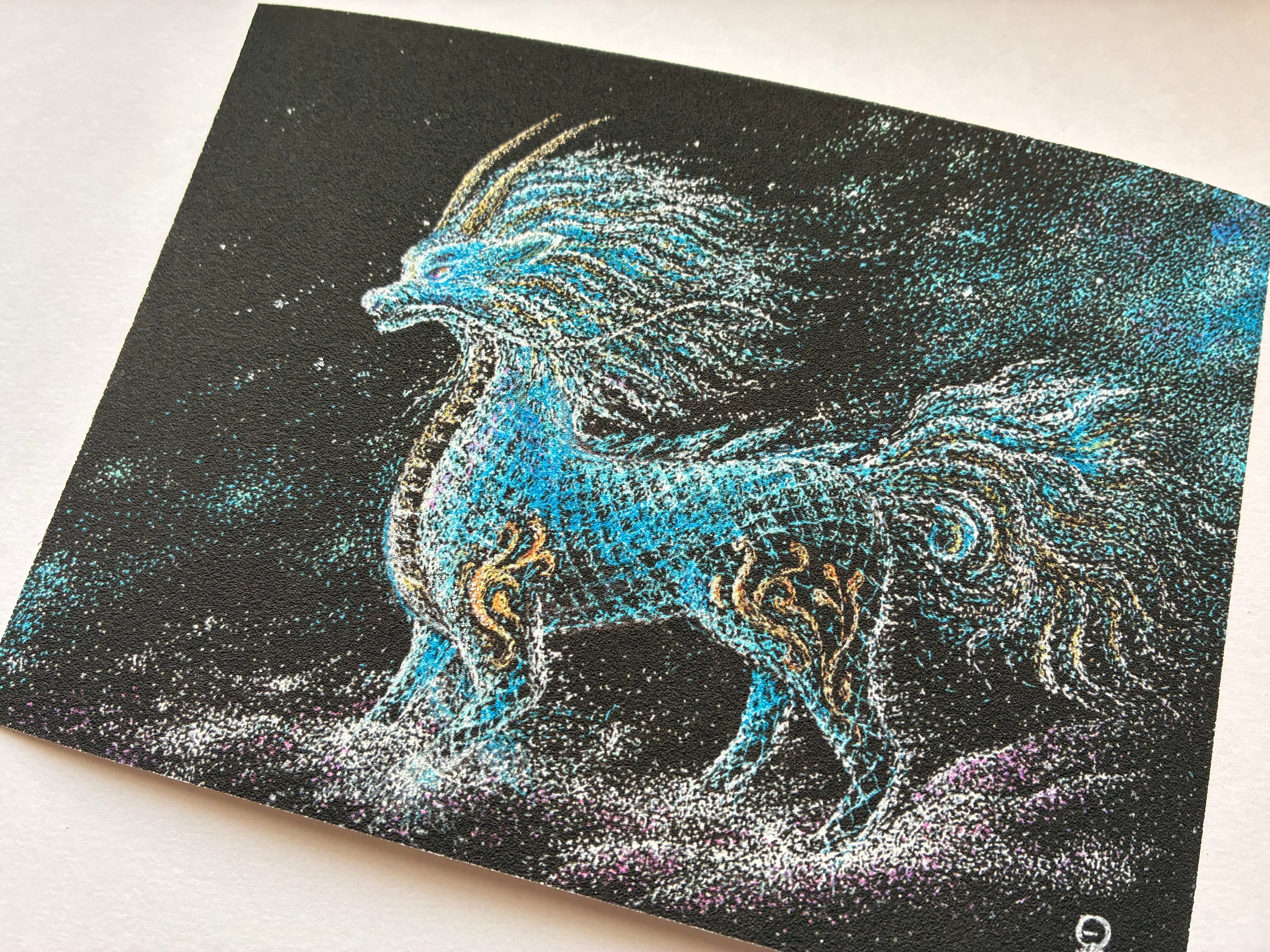 少し前に依頼を受けて描かせていただいた水色の麒麟。